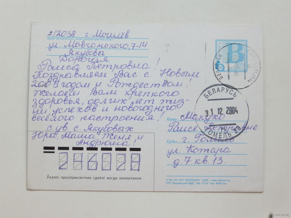 Белпошта с новым годом 2004 10х15 см