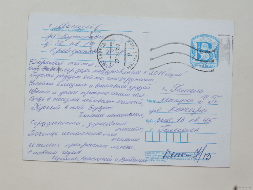 Белпошта с новым годом 2010 10х15 см