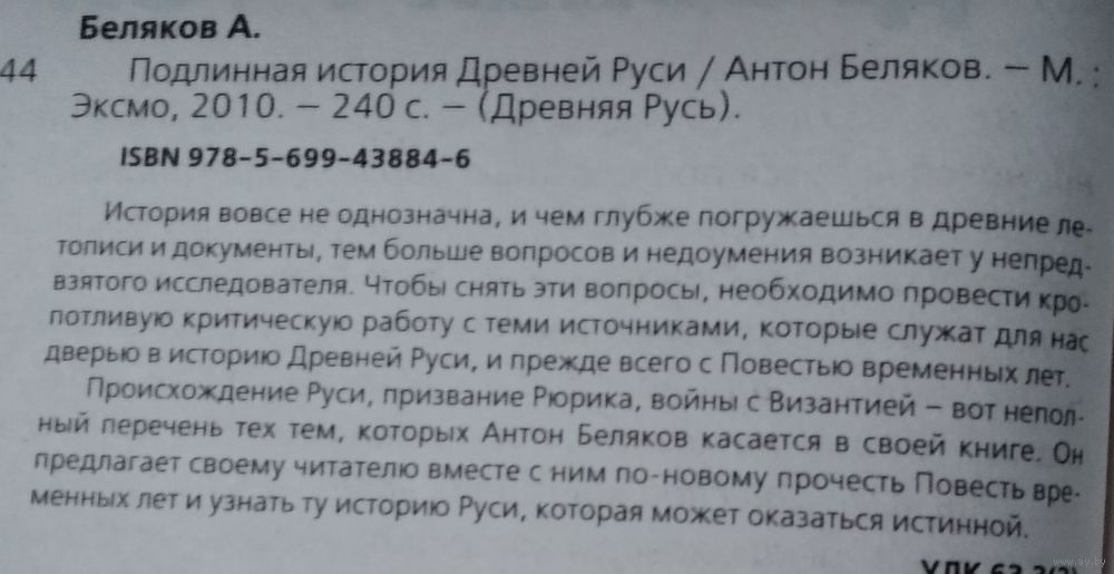История вовсе не однозначна, и чем глубже погружаешься в древние летописи и документы, тем больше вопросов и недоумения возникает у непредвзятого исследователя. Чтобы снять эти вопросы, необходимо провести кропотливую критическую работу с теми источниками, которые служат для нас дверью в историю Древней Руси, и прежде всего с Повестью временных лет. Происхождение Руси, призвание Рюрика, войны с Византией - вот неполный перечень тех тем, которых Антон Беляков касается в своей книге. Он предлагает своему читателю вместе с ним по-новому прочесть Повесть временных лет и узнать ту историю Руси, которая может оказаться истинной.