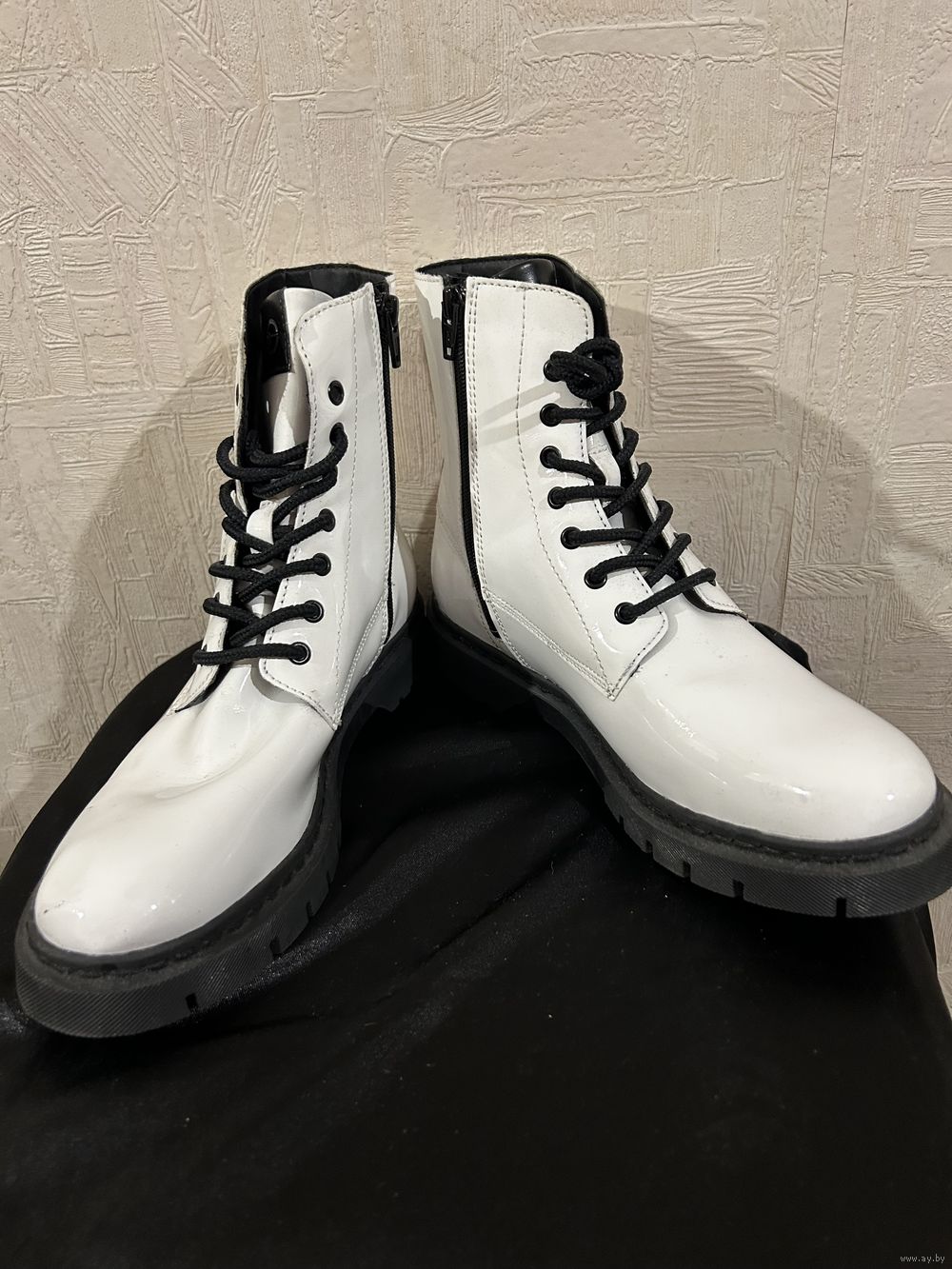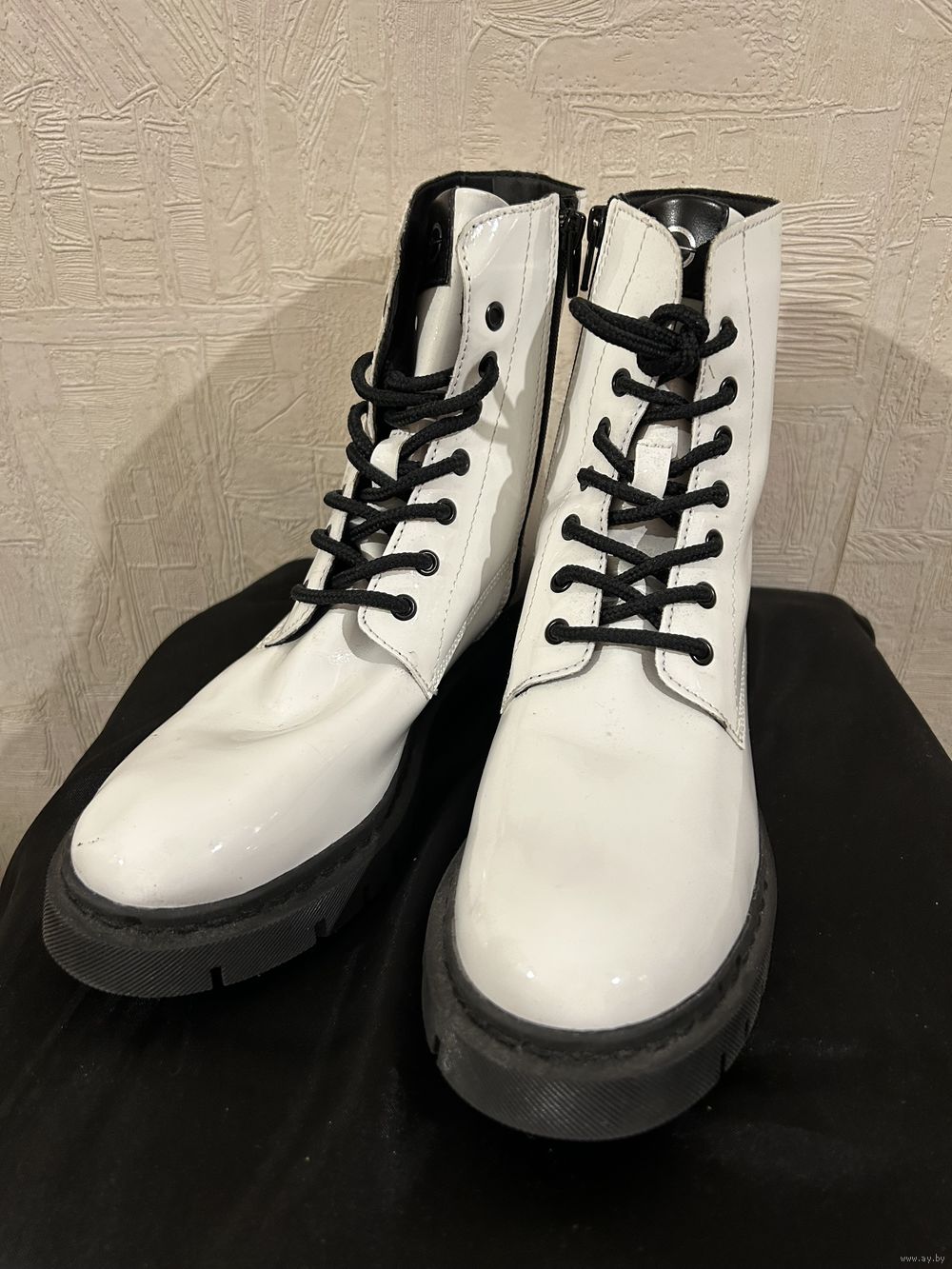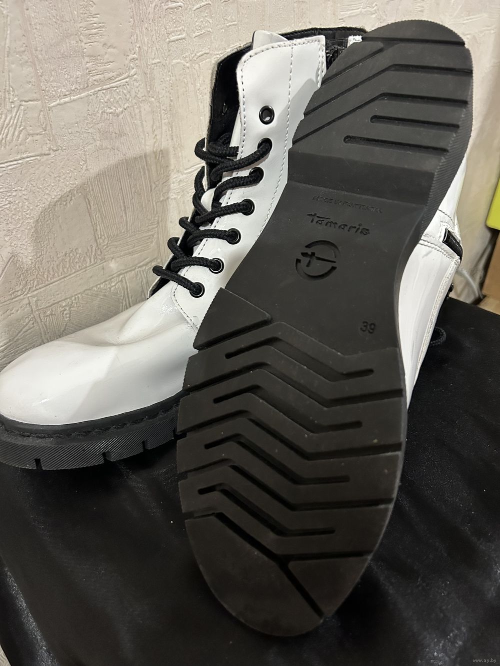 Белые красивые ботинки Tamaris на толстой подошве с небольшим устойчивым каблуком 3см.