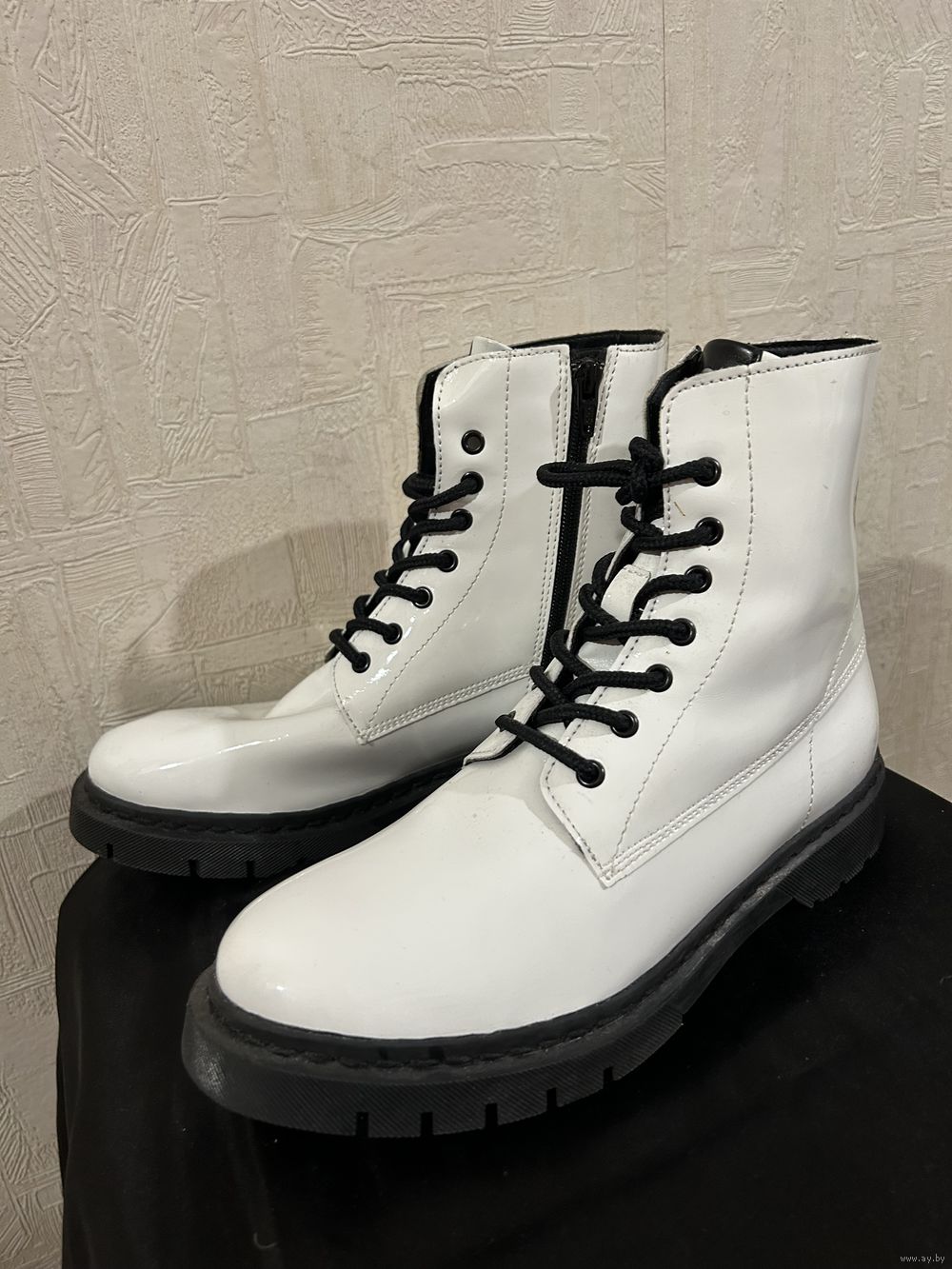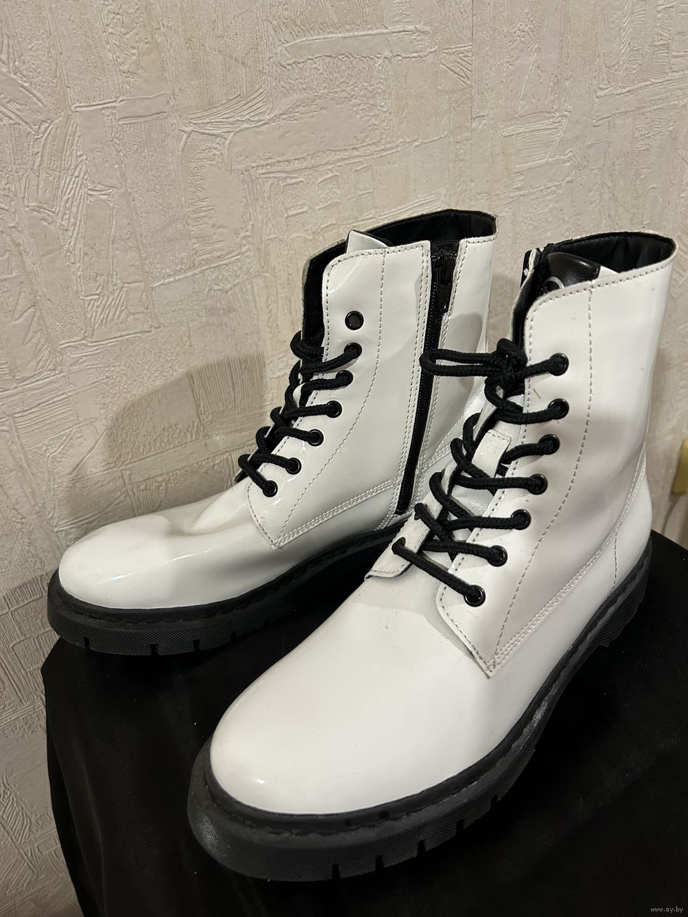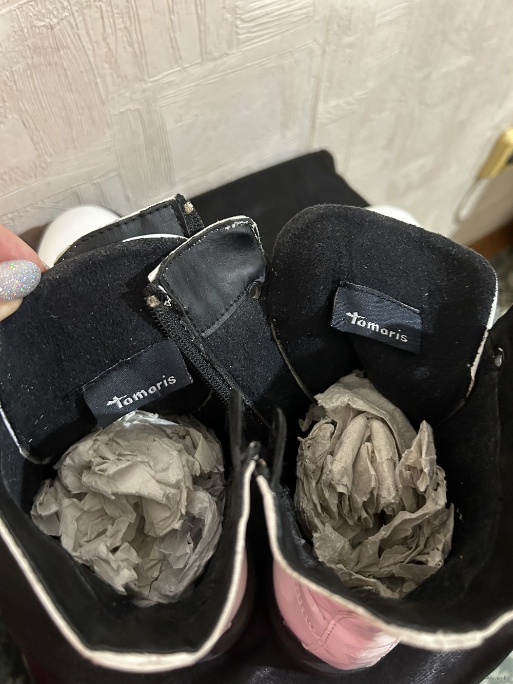 Белые красивые ботинки Tamaris на толстой подошве с небольшим устойчивым каблуком 3см.