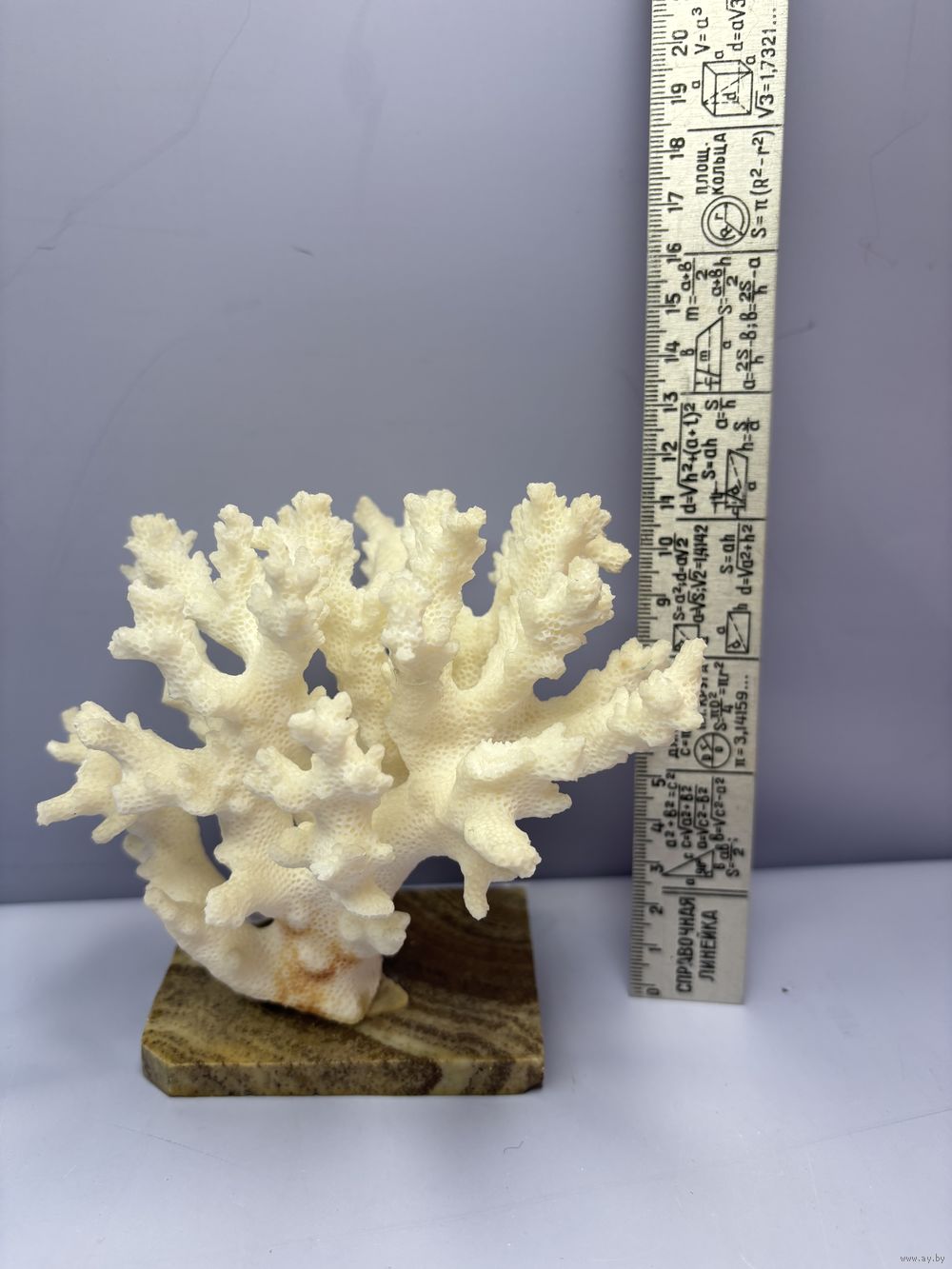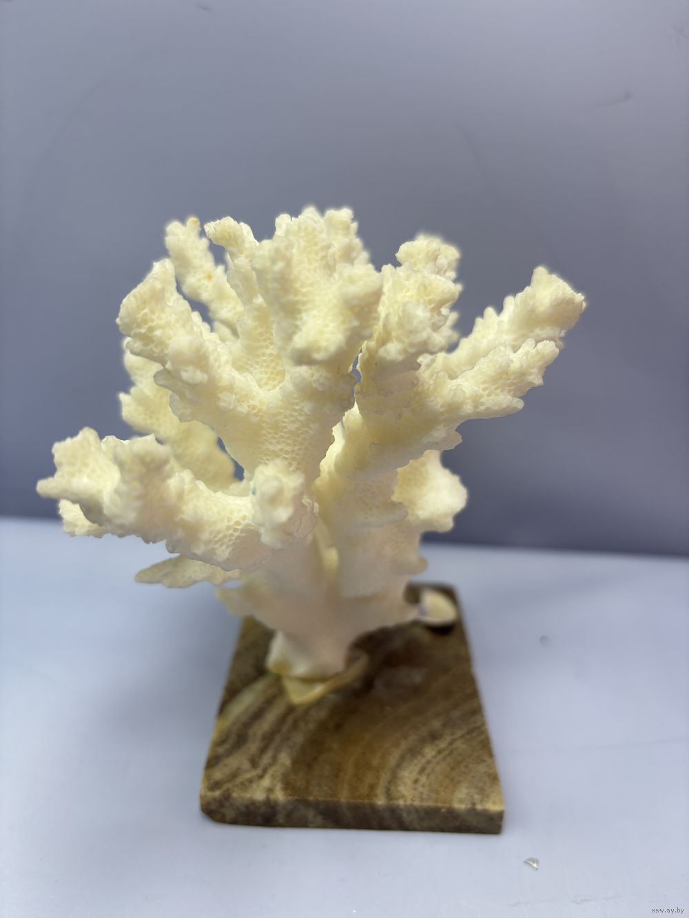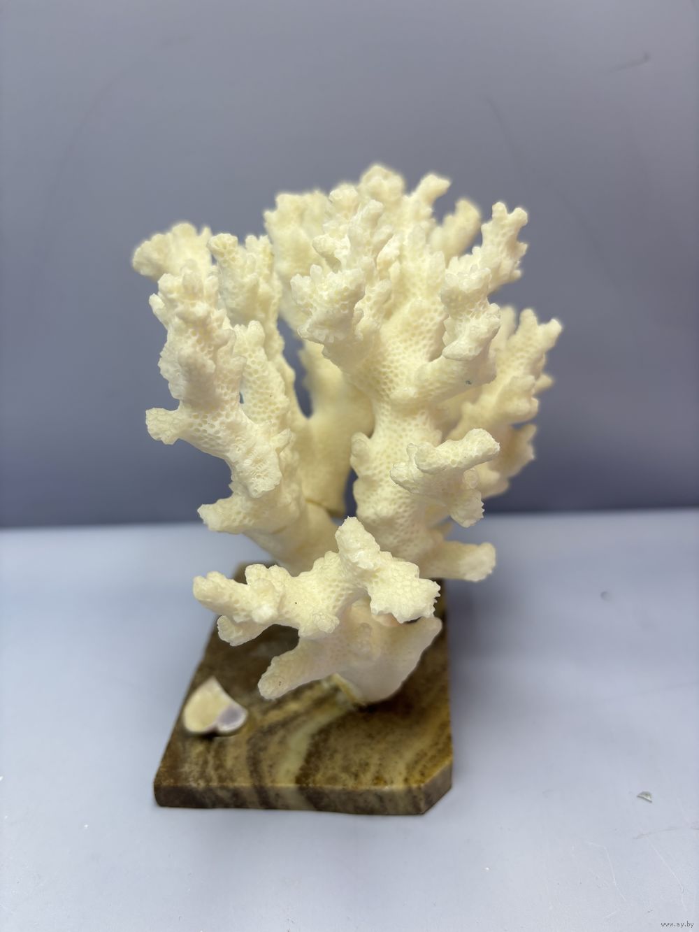 Белый натуральный коралл Acropora на подставке из мрамора или оникса