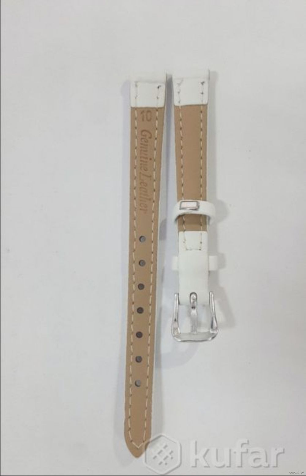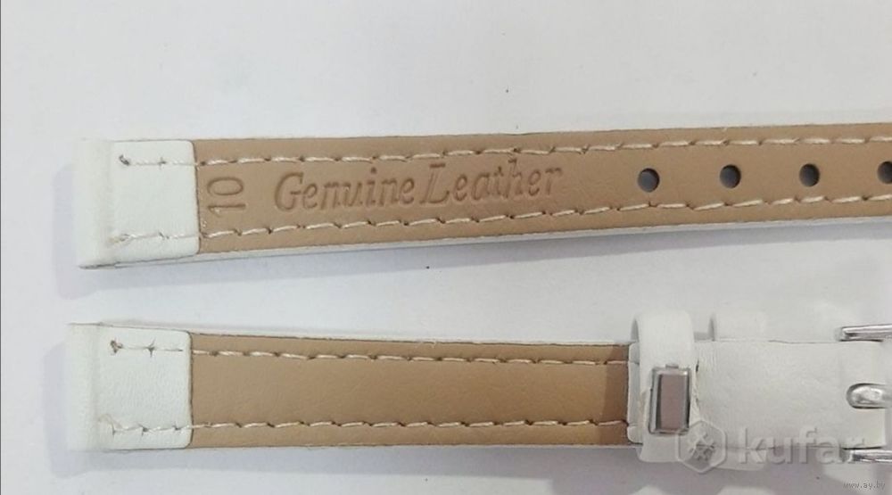 Белый Ремешок 10мм для часов, в упаковке. GENUINE LEATHER. Кожзам отличного качества. 5р. Есть 2шт. Застёжка белого цвета. Длина длинной части по габаритам-10,5см. От края-крепления до последней дырочки-8,5см. Длина короткой части от края-крепления до начала пряжки-6см.; с пряжкой-7,5см. Могу выслать Европочтой или обычной почтой наложенным платежом.