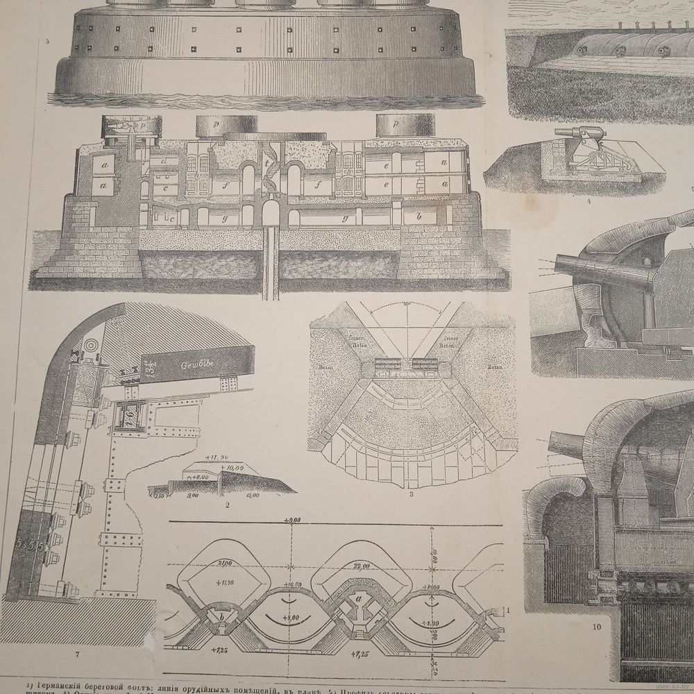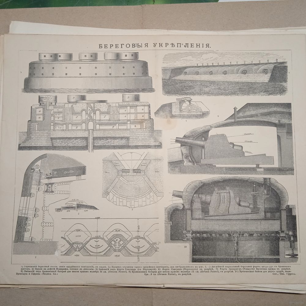 БЕРЕГОВЫЕ УКРЕПЛЕНИЯ. Энциклопедическая гравюра конец 19в. 31х24см.