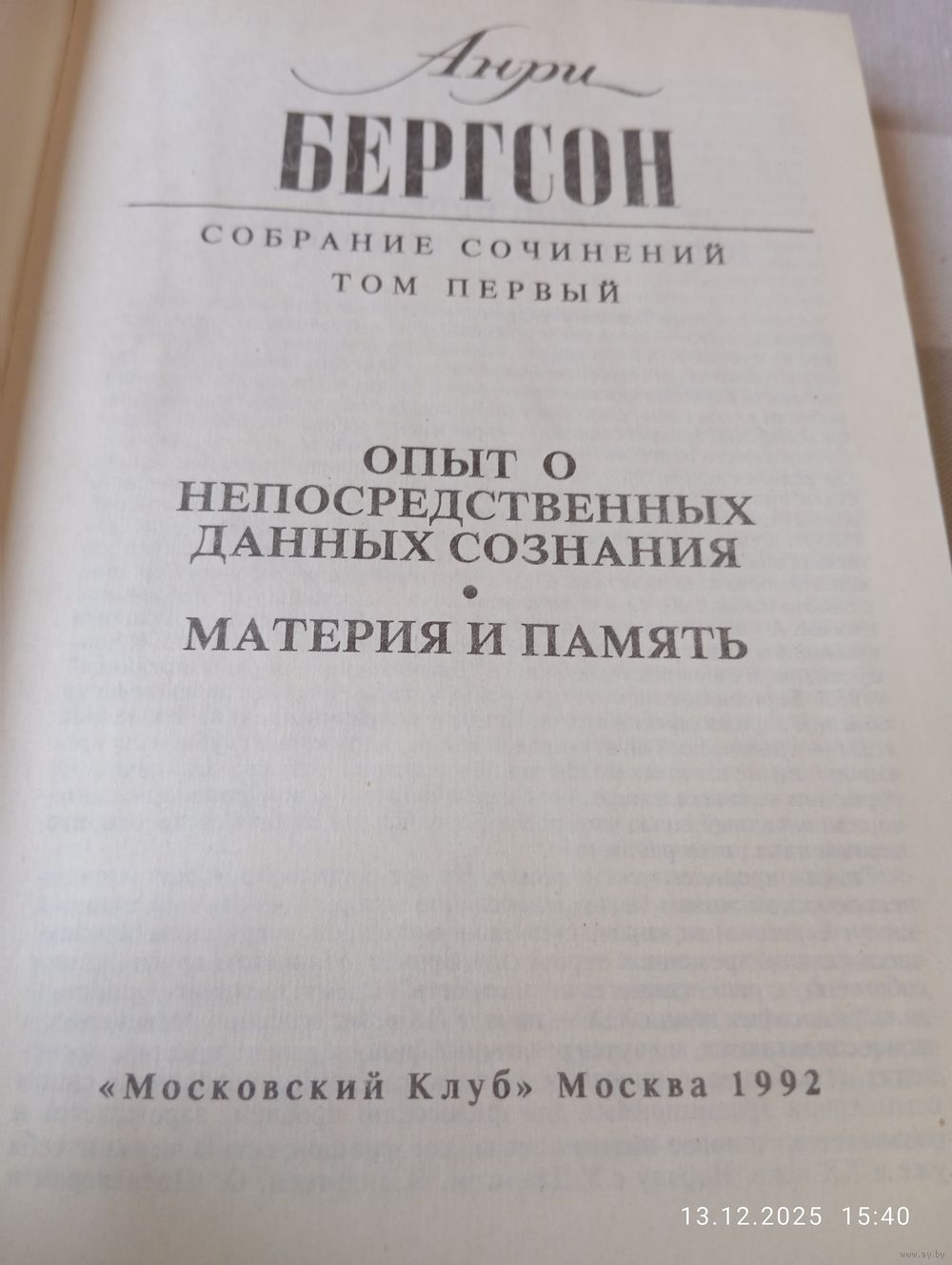 Анри Бергсон. Собрание сочинений т 1. Опыт о непосредственных данных сознания. Московский клуб 1992. В хорошем состоянии, тв переплет. 336 с. Достаточно редкая. Возможность отправки Белпочтой, полная предоплата