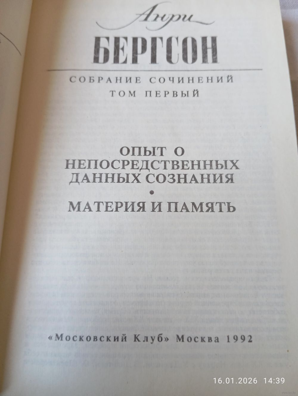 Анри Бергсон. Собрание сочинений т 1. Опыт о непосредственных данных сознания. М. Московский клуб 1992. В прекрасном состоянии, тв переплет. 336 с. Возможность отправки Белпочтой, полная предоплата
