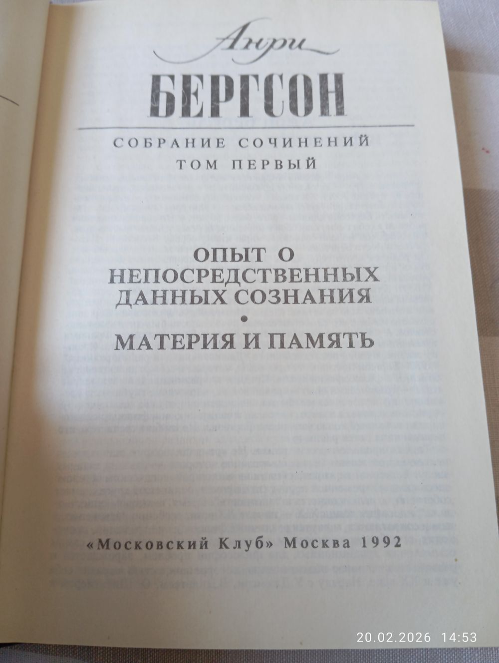 Анри Бергсон. Собрание сочинений т 1. Опыт о непосредственных данных сознания. Московский клуб 1992. В хорошем состоянии, тв переплет. 336 с. Возможность отправки Белпочтой, полная предоплата
