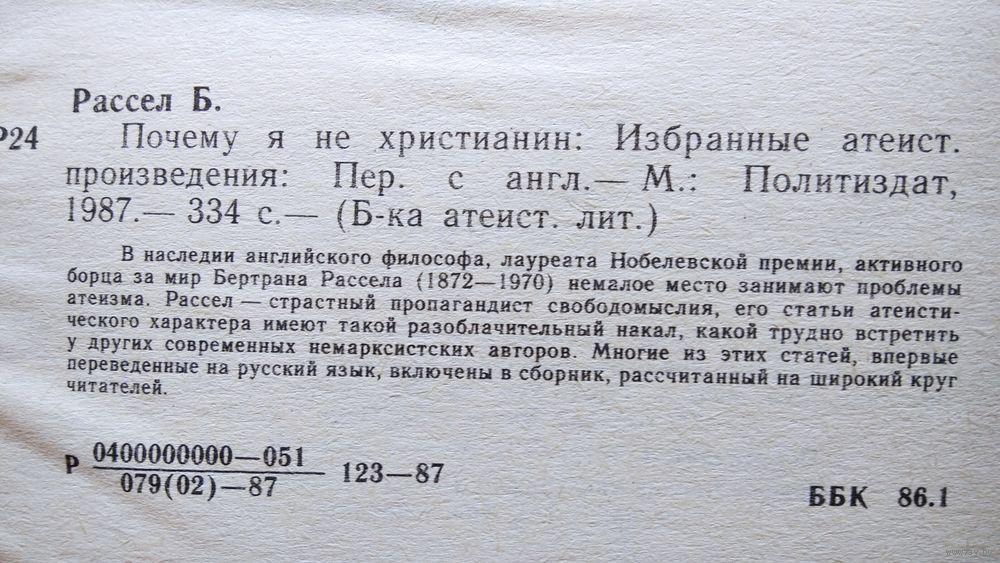 В сборник вошли атеистические произведения великого английского философа и гуманиста 20-го века, лауреата Нобелевской премии.