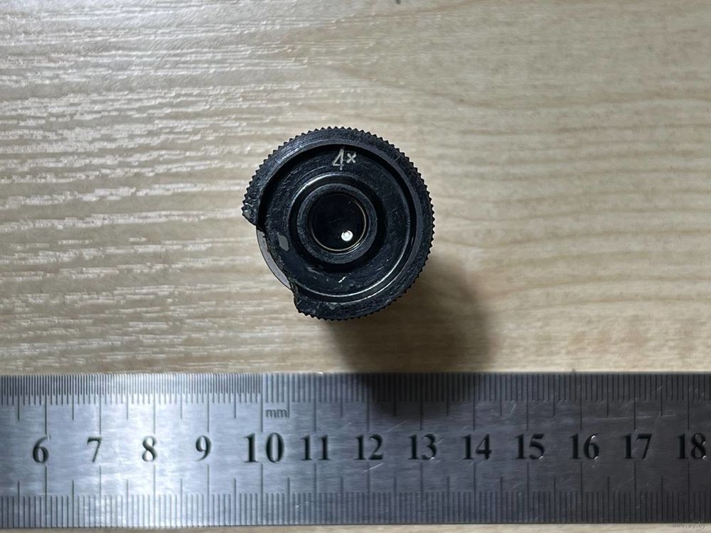 Окуляр от биологического микроскопа. Диаметр посадки 23,15мм. Увеличение 4х.