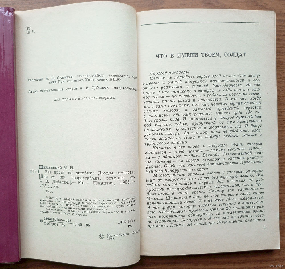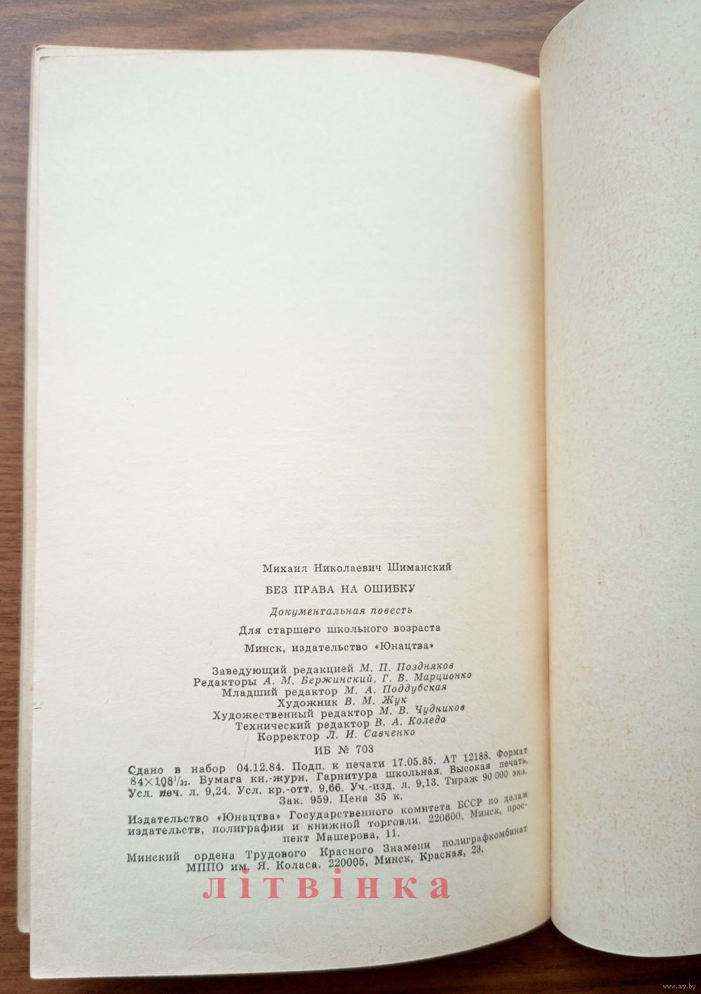 "Без права на ошибку" - Михаил Шиманский. Документальная повесть о воинах-сапёрах Краснознамённого Белорусского округа.