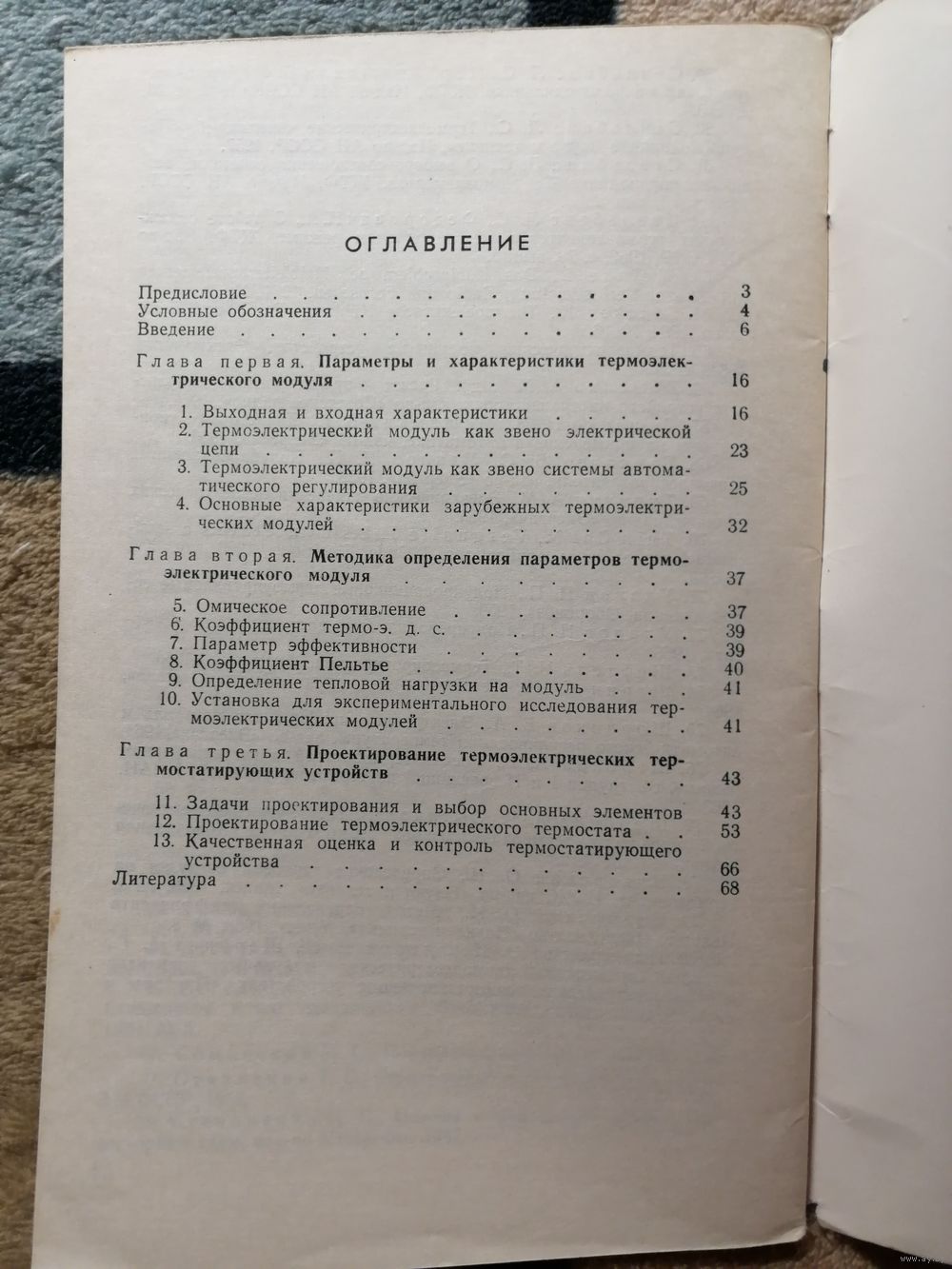В книге рассматриваются статические и динамические характеристики термоэлектрических модулей, приводится методика определения их основных параметров и описывается экспериментальная установка. В книге изложены вопросы теории и практики термоэлектрической термостабилизации, в частности, методика проектирования и рекомендации по конструированию термоэлектрического термостата и выбору элементов системы управления, а также приводится числовой пример расчета. Книга предназначена для широкого круга специалистов, работающих в области радиоэлектроники и приборостроения, и студентов вузов соответствующих специальностей.