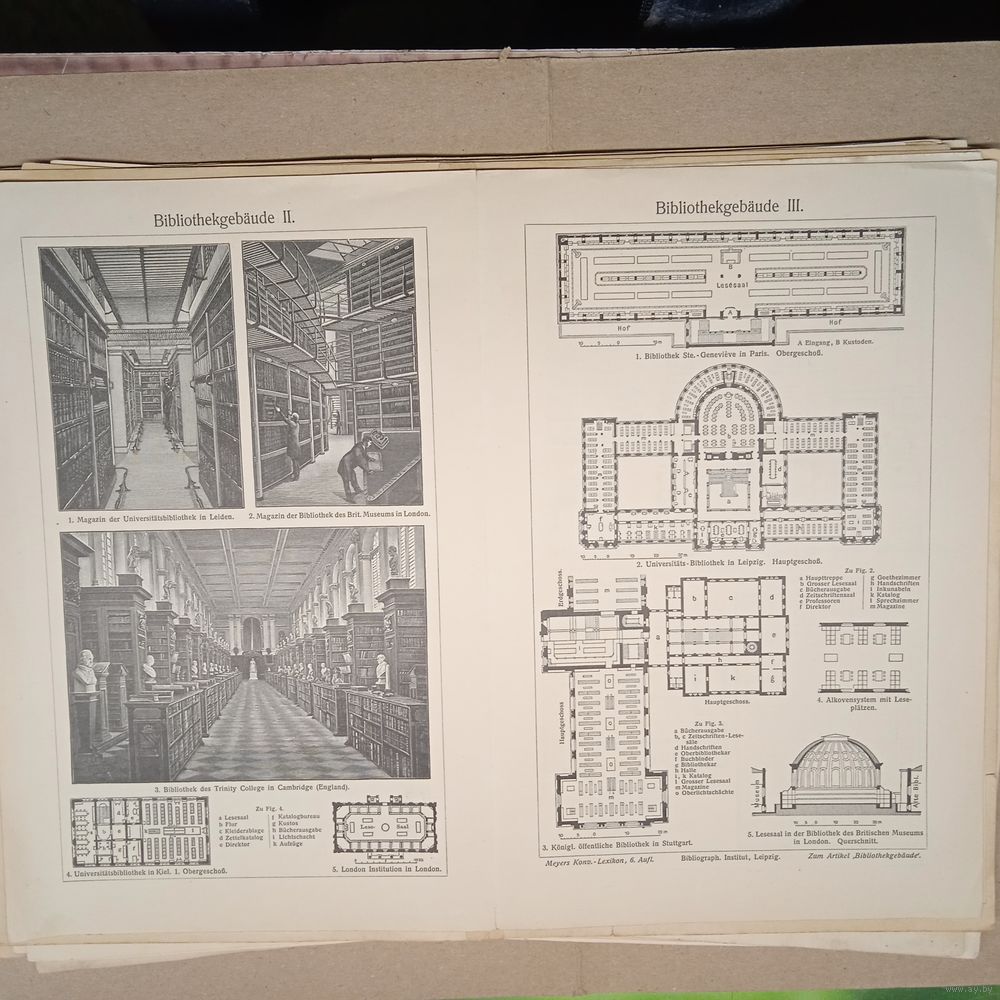 Bibliotekgebaude . Энциклопедическая гравюра конец 19в. Германия.