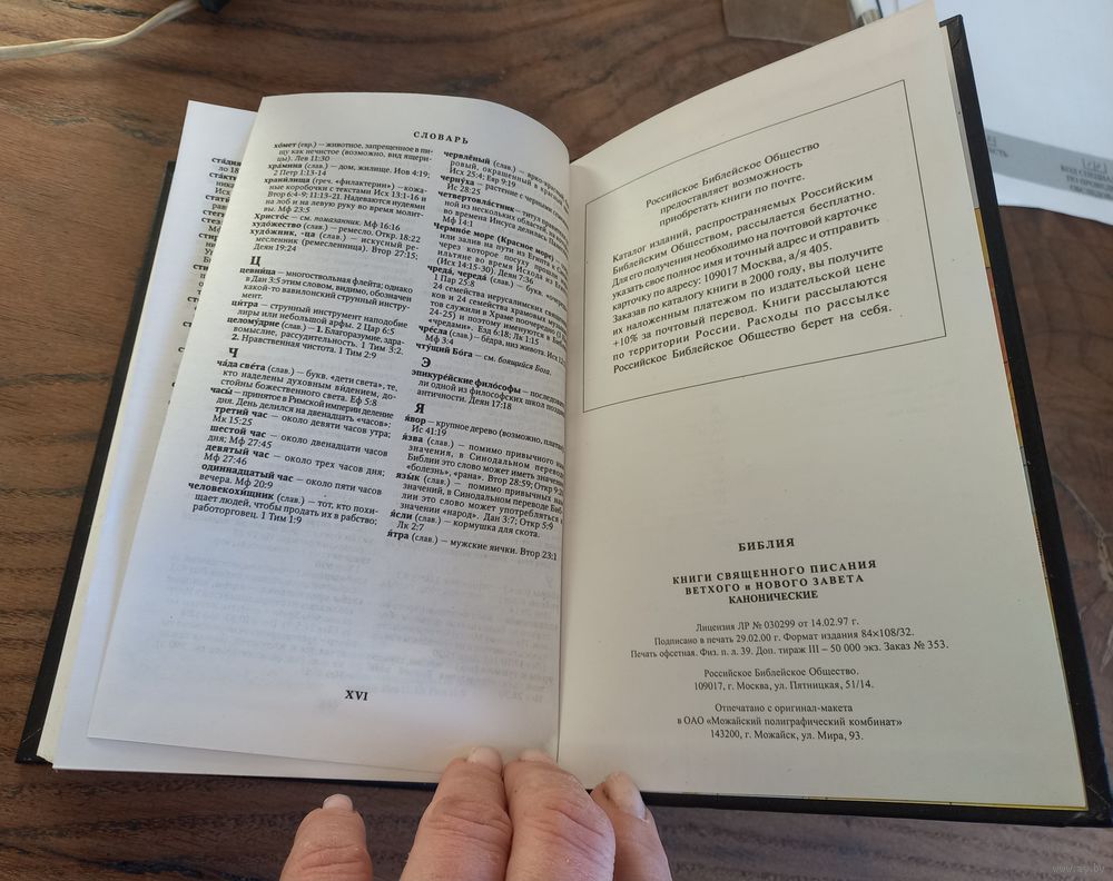 Библия, Москва, 2000 год, тираж 50 000 экземпляров. Российское библейское общество.