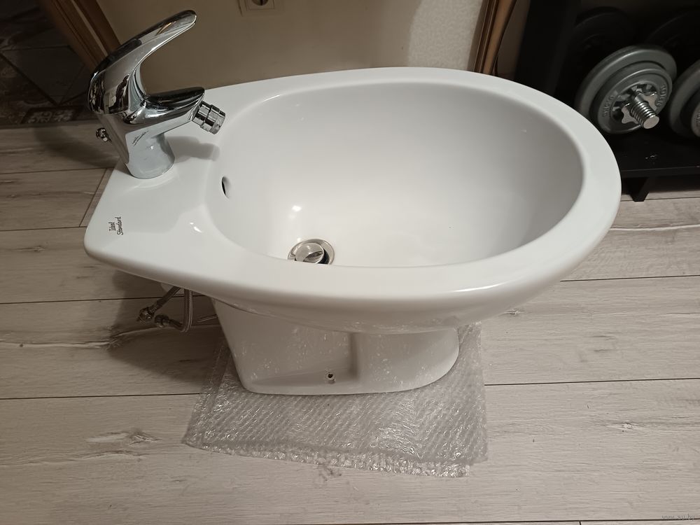 Биде, в хорошем состоянии, со смесителем. Пользовались мало. Чистый. Размеры на фото