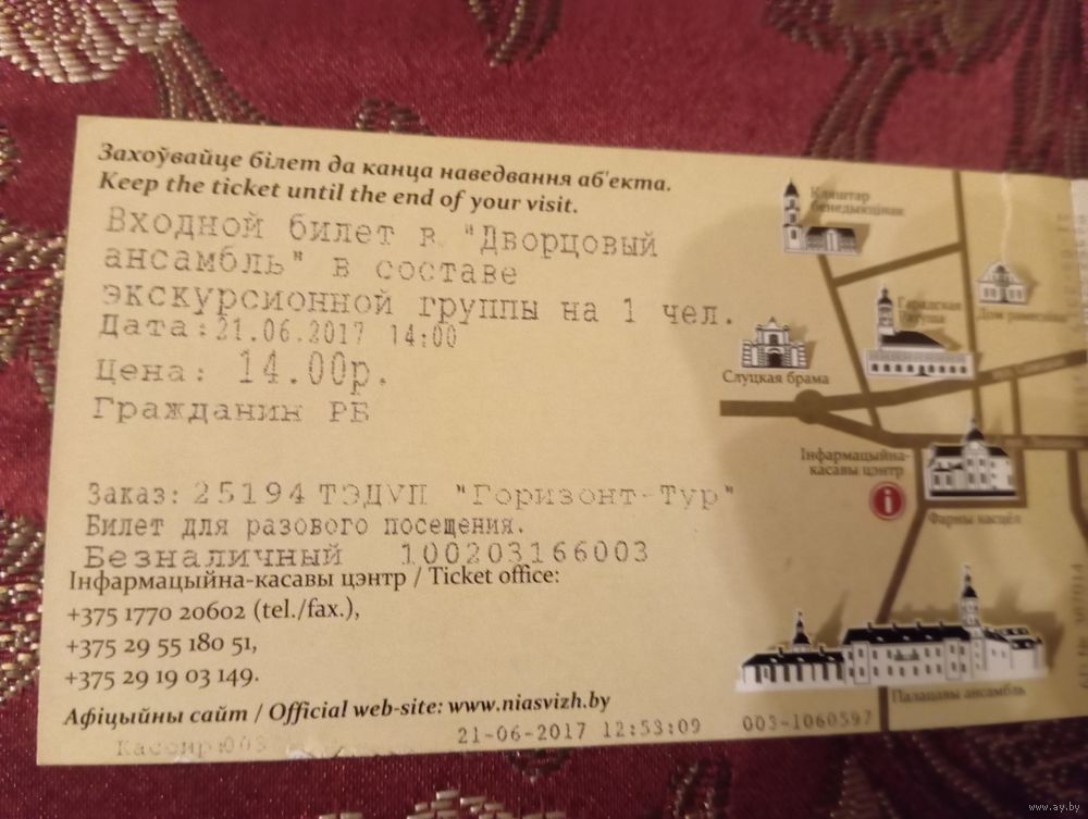 +1Билет предоставляет право на однократное посещение дворцового ансамбля в Несвиже в составе экскурсионной группы. Несвижский замок — это архитектурный памятник XVI–XVIII веков, включенный в список Всемирного наследия ЮНЕСКО и являющийся одной из самых популярных достопримечательностей Беларуси.