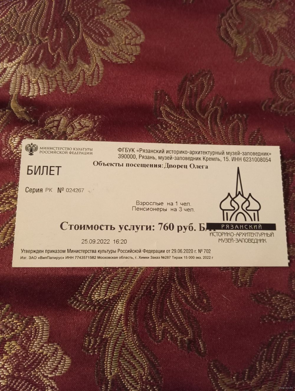 билет в Рязанский историко-архитектурный музей-заповедник. Билет дает право на посещение объекта «Дворец Олега» для одного взрослого и трех пенсионеров.