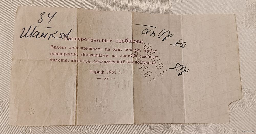 На изображении представлен старый железнодорожный билет и таблица с ценами на билеты по поясам.