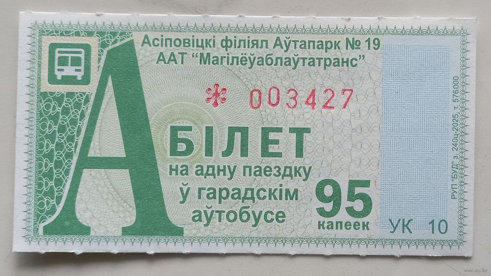 Вашему вниманию билет на одну поездку в городе Осиповичи.