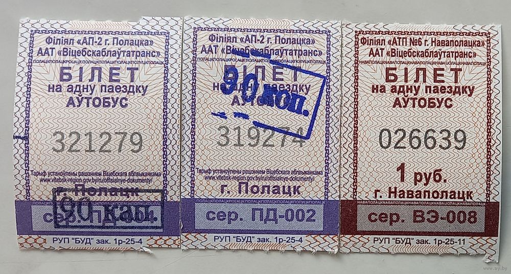 Вашему вниманию билет на одну поездку в городе Полоцк и Новополоцк с текущим тарифом и надпечаткой текущего тарифа в двух вариациях.