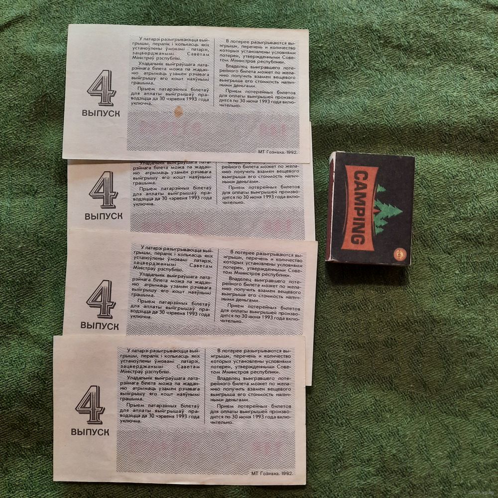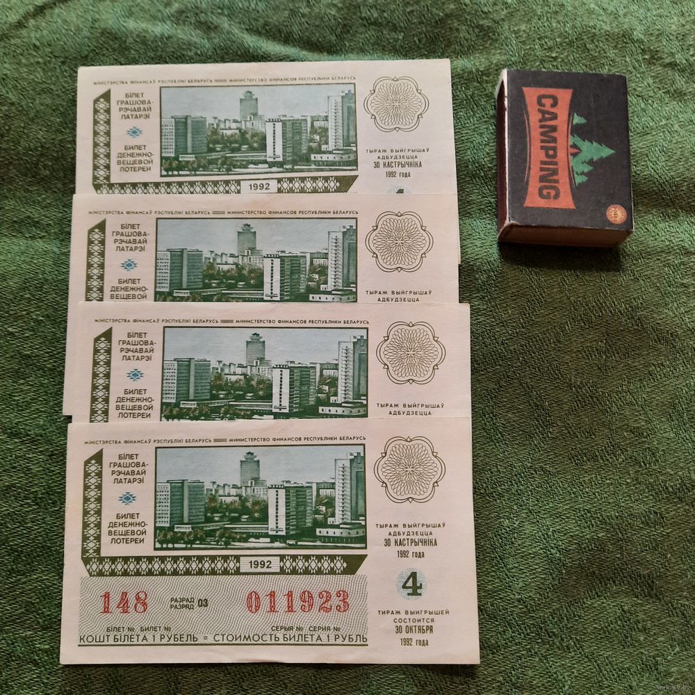 Білет грашова-рэчавай латарэі, 1992г. 4 выпуск. (4 шт.)
