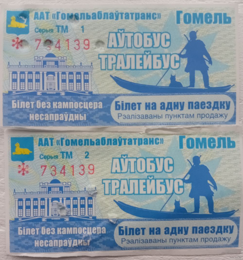 Билет на одну поездку. г. Гомель. Два билета одним лотом