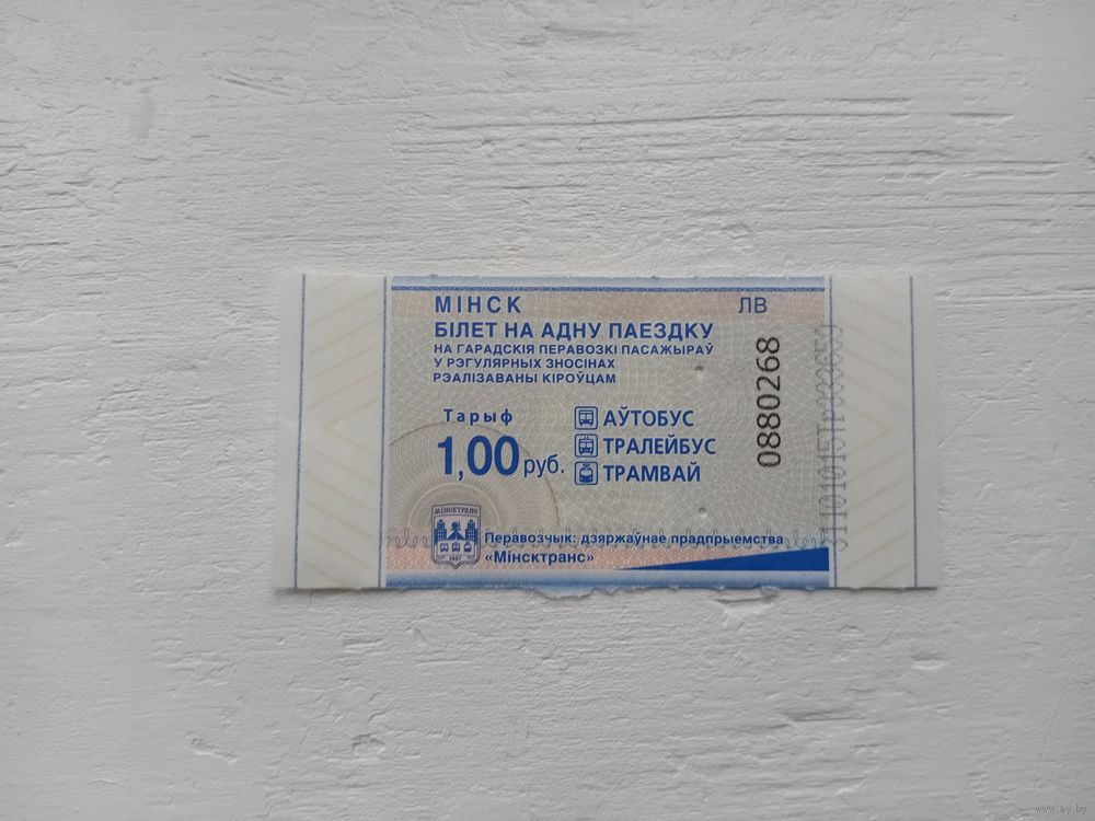 Билет на одну поездку. г. Минск. 0880268
