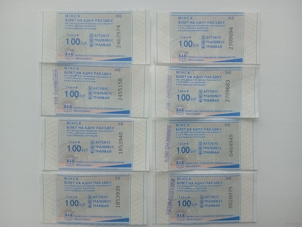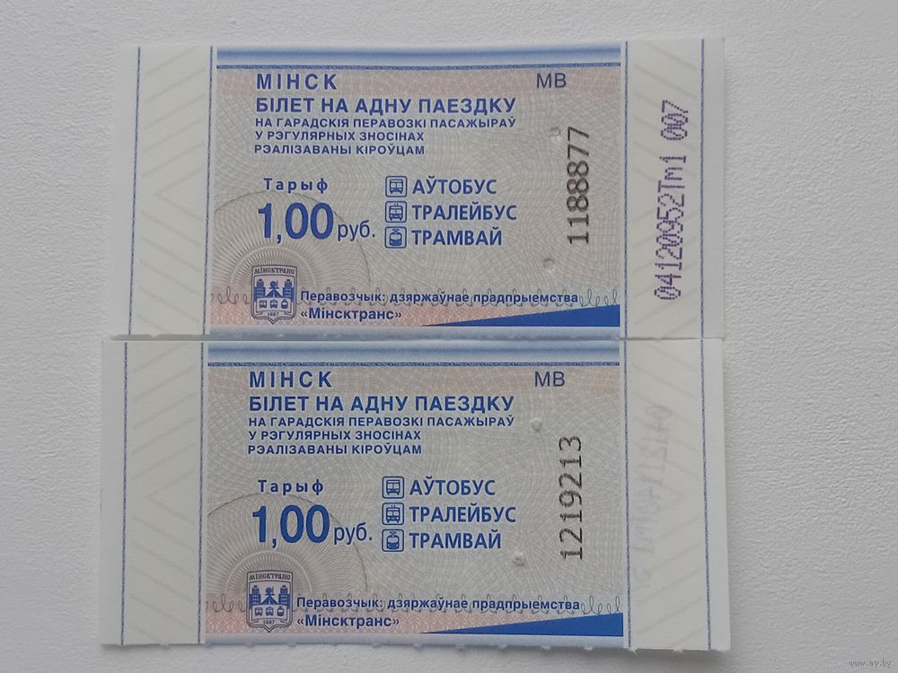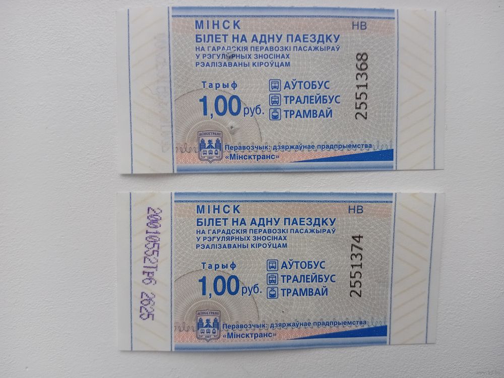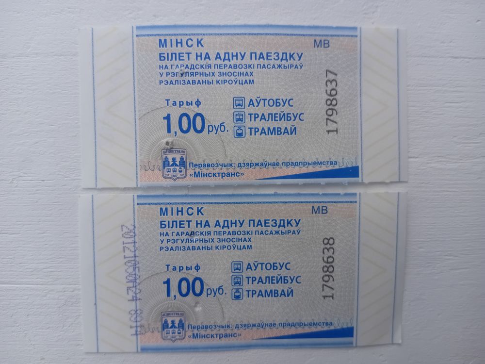 Билет на одну поездку. г. Минск. ЕВ,ЖВ,МВ,НВ