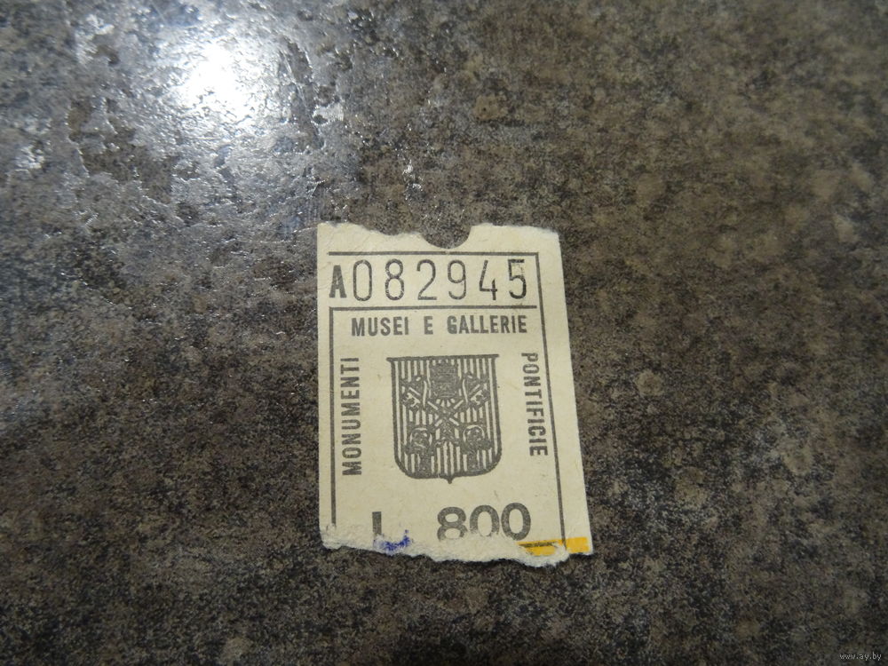 Билет на посещение Папского музея в Ватикане, от 06.05.1974 г., разм. 2,6*3,0 см