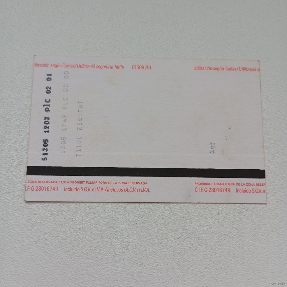 Билет проездной жд Renfe Испания 1999