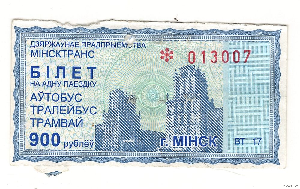 Билет (талон) 900 рублей Минск. Возможен обмен