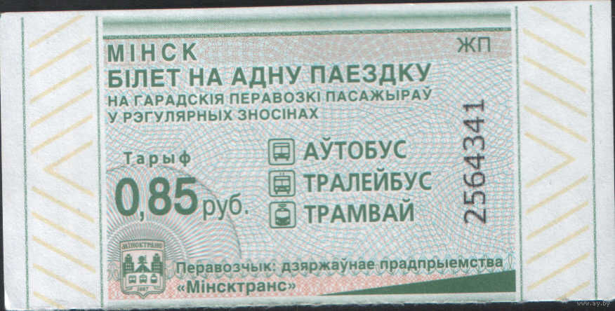 Билет - Талон б/у - Минск 0,85 к. (зак. 438ц - 2023)