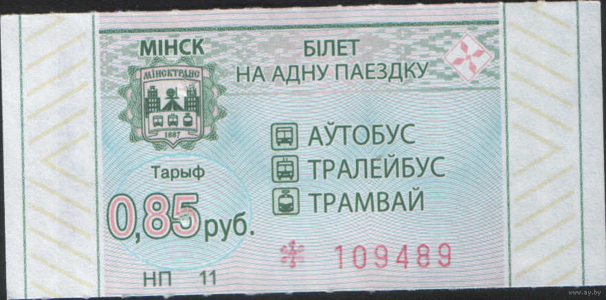 Билет - Талон б/у - Минск 0,85 к. (зак. 48ц - 2023)