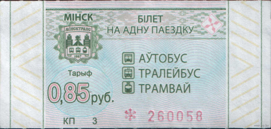 Билет - Талон б/у - Минск 0,85 к. (зак. 636ц - 2022)