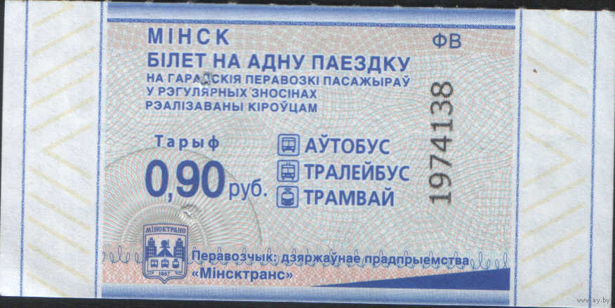 Билет - Талон б/у - Минск 0,90 к. (зак. 295ц - 2024)