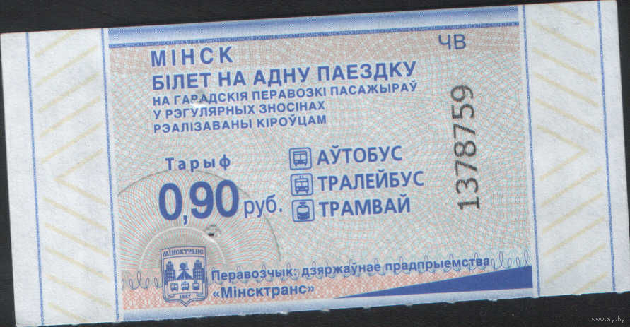 Билет - Талон б/у - Минск 0,90 к. (зак. 408ц - 2024)