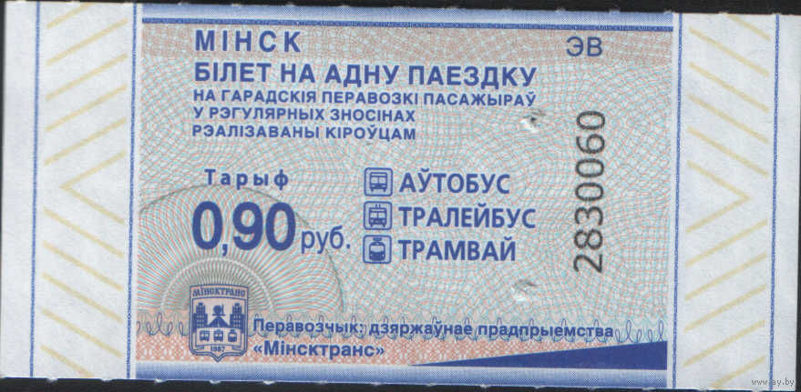 Билет - Талон б/у - Минск 0,90 к. (зак. 477ц - 2024)
