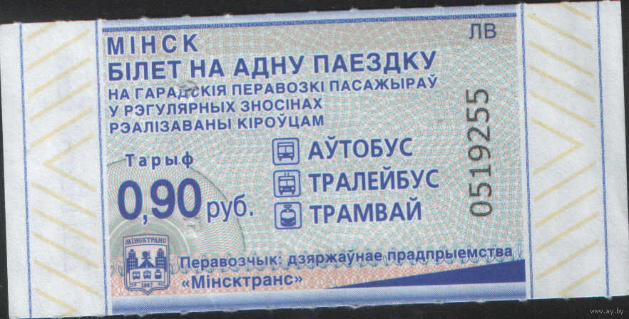 Билет - Талон б/у - Минск 0,90 к. (зак. 493ц - 2023)