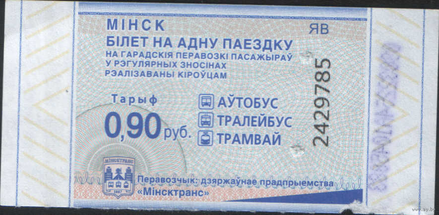 Билет - Талон б/у - Минск 0,90 к. (зак. 592ц - 2024)