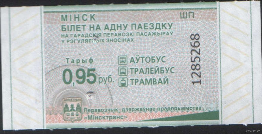 Билет - Талон б/у - Минск 0,95 к. (зак. 158ц - 2026)