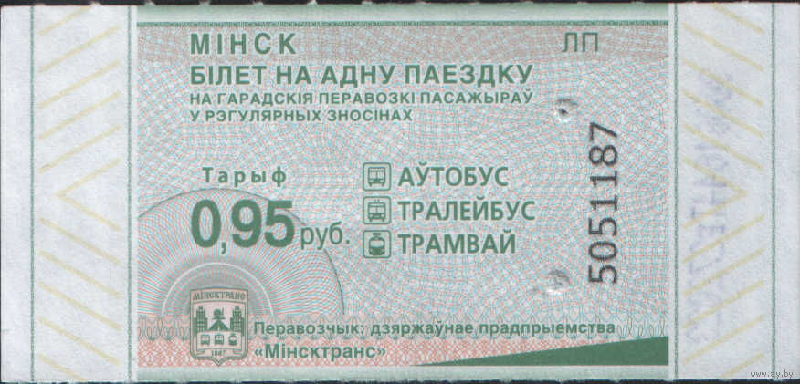 Билет - Талон б/у - Минск 0,95 к. (зак. 216ц - 2025)