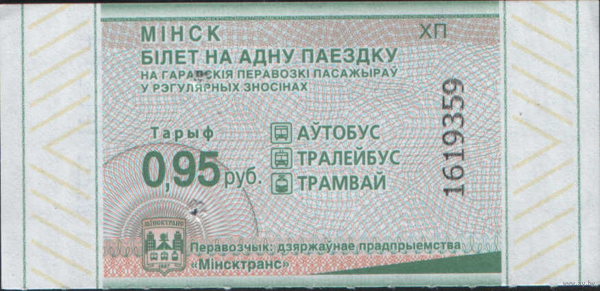 Билет - Талон б/у - Минск 0,95 к. (зак. 616ц - 2025)