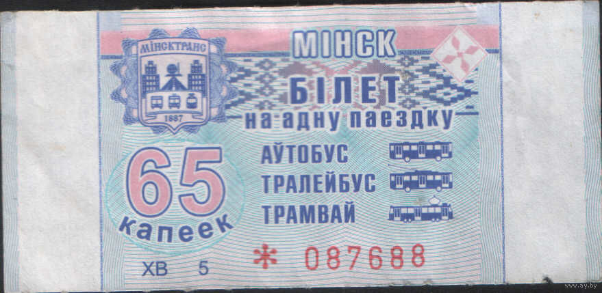 Билет - Талон б/у - Минск 65 к. (зак. 162ц - 2018)