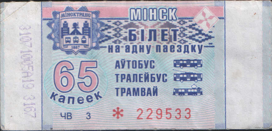 Билет - Талон б/у - Минск 65 к. (зак. 261ц - 2018)