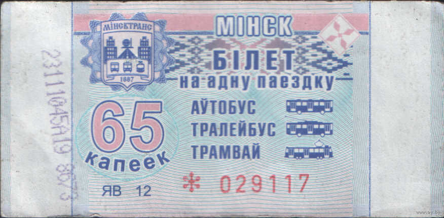 Билет - Талон б/у - Минск 65 к. (зак. 554ц - 2018)
