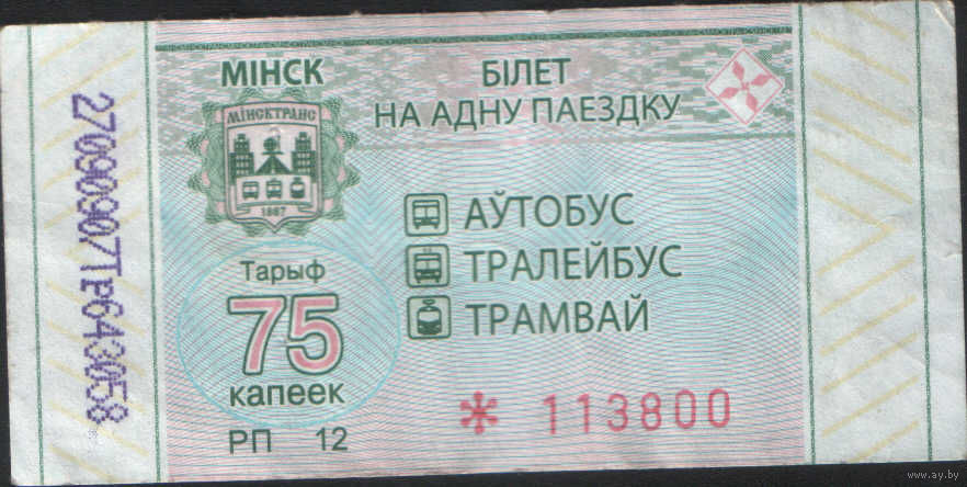 Билет - Талон б/у - Минск 75 к. (зак. 321ц - 2021)