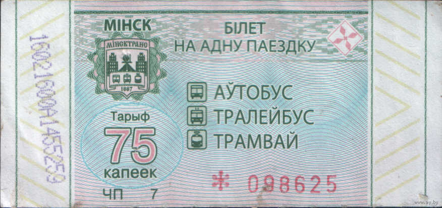 Билет - Талон б/у - Минск 75 к. (зак. 688ц - 2021)