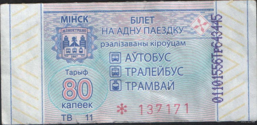 Билет - Талон б/у - Минск 80 к. (зак. 453ц - 2021)