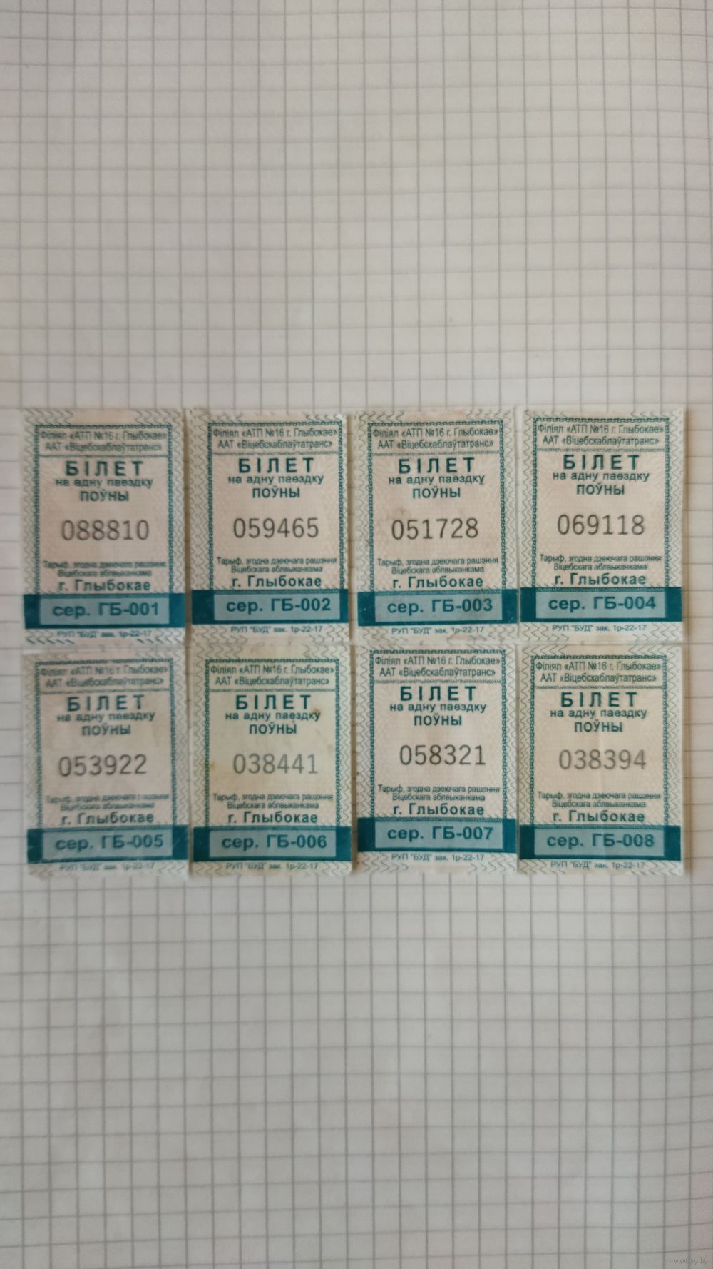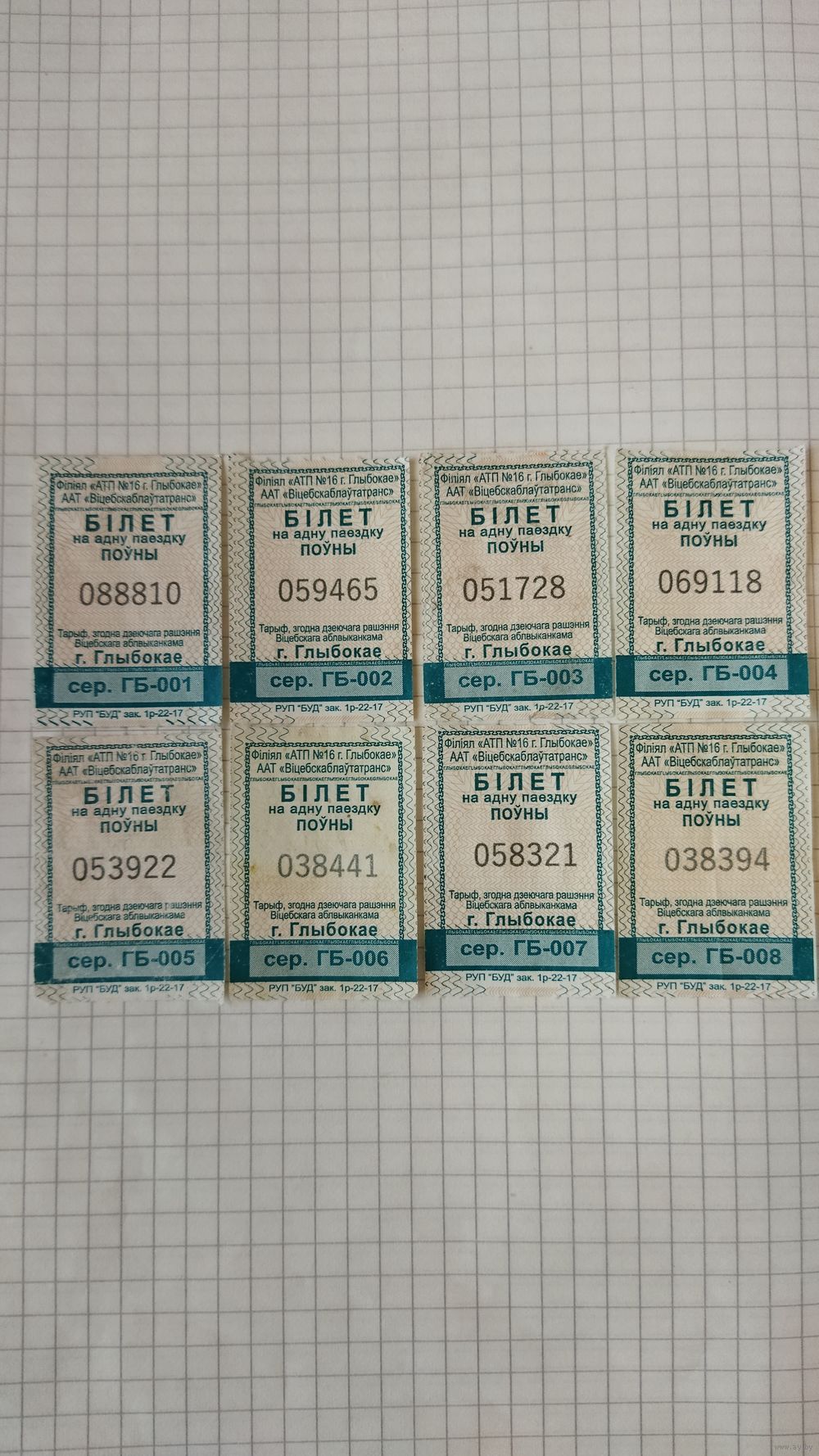 Билеты на одну поездку. Серия ГБ г.Глубокое 2022 г.