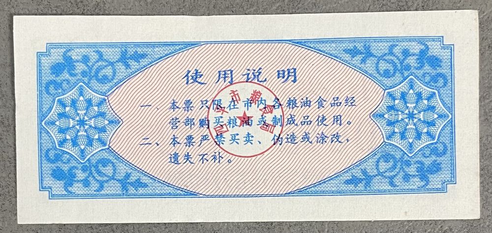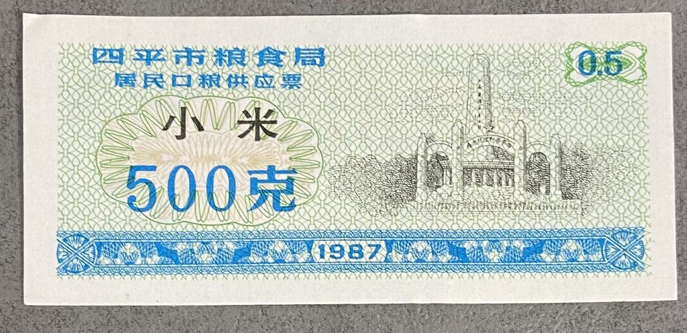 Билеты на поставку зерна для жителей города Сипинг, приобретенные в зерновом бюро 1987 год. Китай. С рубля без МЦ.