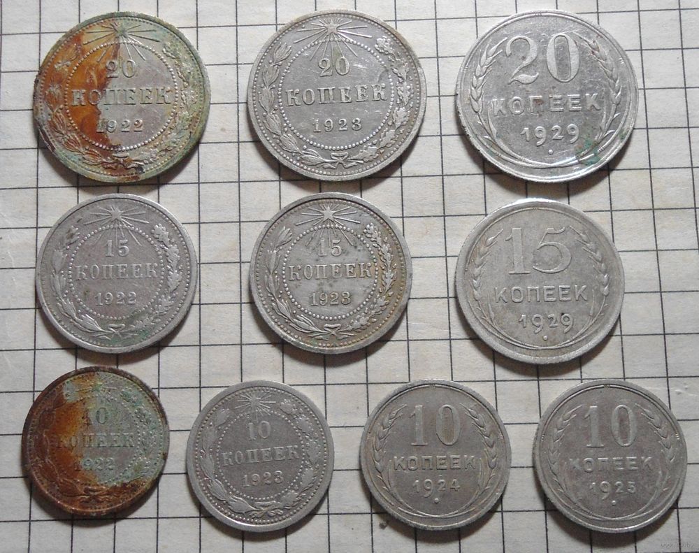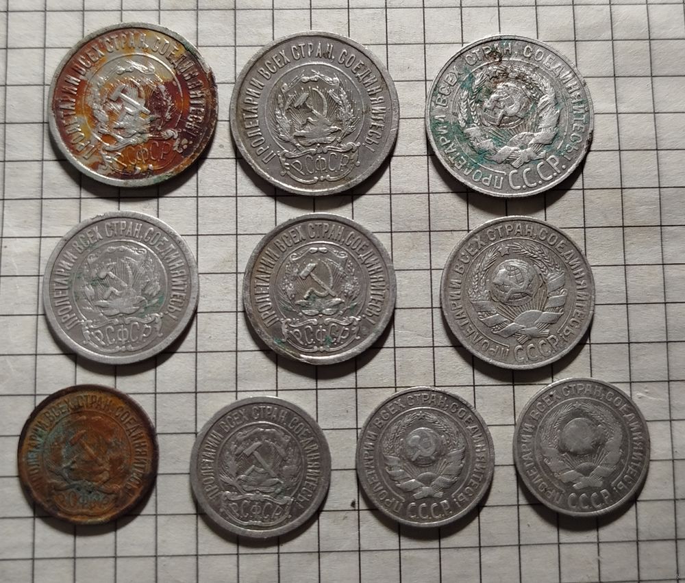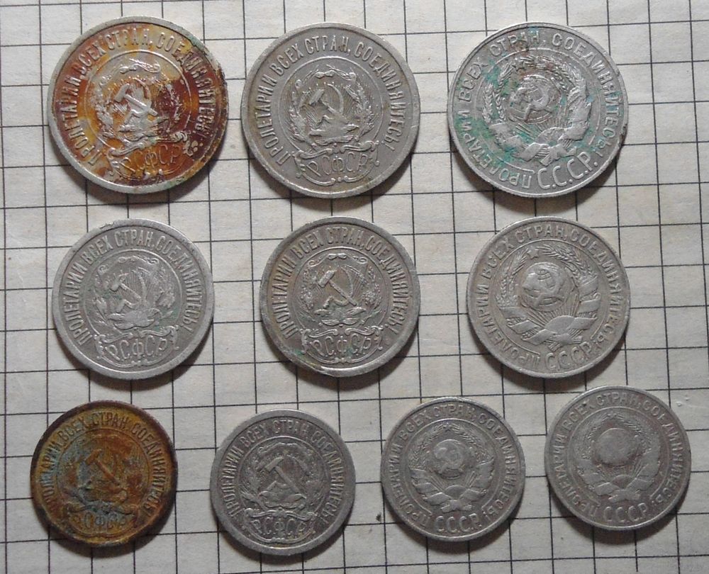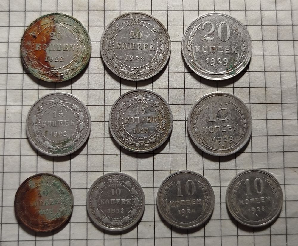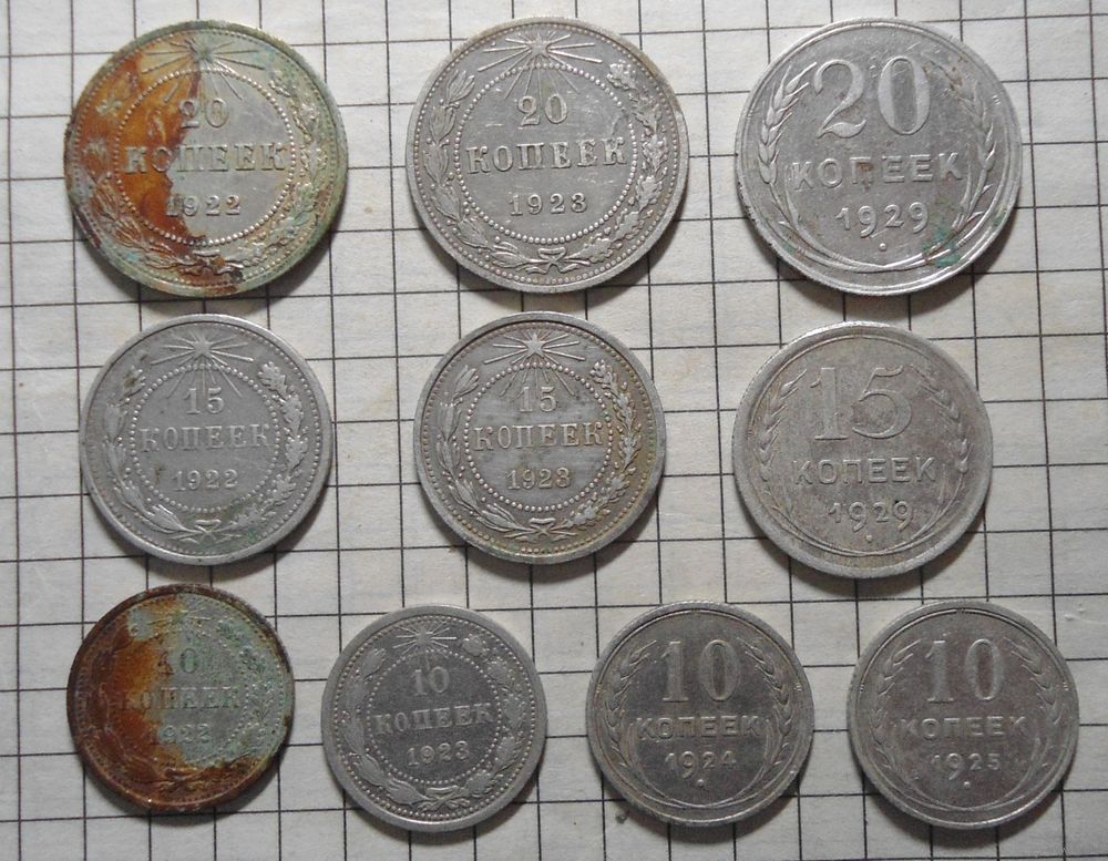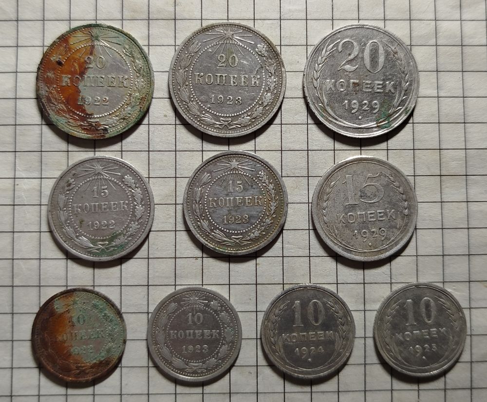 Нужна грамотная чистка,присутствует остаточный блеск,монеты 20 коп 1922 и 10 коп 1922 кладовые